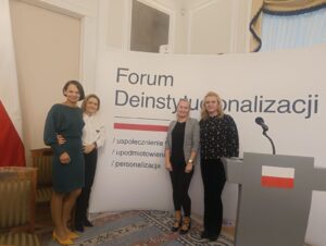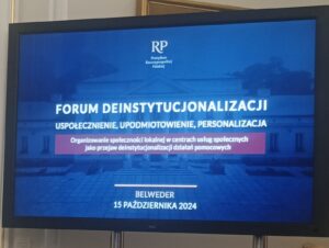 Z przyjemnością informujemy, że Elbląskie Centrum Usług Społecznych zostało zaproszone do udziału w V Forum Deinstytucjonalizacji. W Belwederze gościliśmy 15 października 2024 r. silną grupą, która zaangażowana była w realizację projektu międzynarodowego CO GREEN. W Forum uczestniczyły Beata Kulesza, Olga Tryba, Małgorzata Kasprzyk – Sawościan i Elwira Tańska. Inicjatywa, którą zrealizowaliśmy w ramach projektu ze społecznością lokalną Dzielnicy Zawodzie oparta była o metodykę CAL. W panelu na temat budowania więzi społecznych mieliśmy możliwość opowiedzieć o tej inicjatywie i jej metodycznych aspektach. Forum było przestrzenią, która umożliwiła dzielenie się dobrymi praktykami, wymianę doświadczeń. Dla osób, które chciałyby przeczytać więcej na temat działalności centrów usług społecznych we wdrażaniu polityki deinstytucjonalizacji oraz organizowania społeczności lokalnej, zostawiamy link do strony Prezydenta RP, gdzie znajdziecie Państwo obszerną relacją ze spotkania.